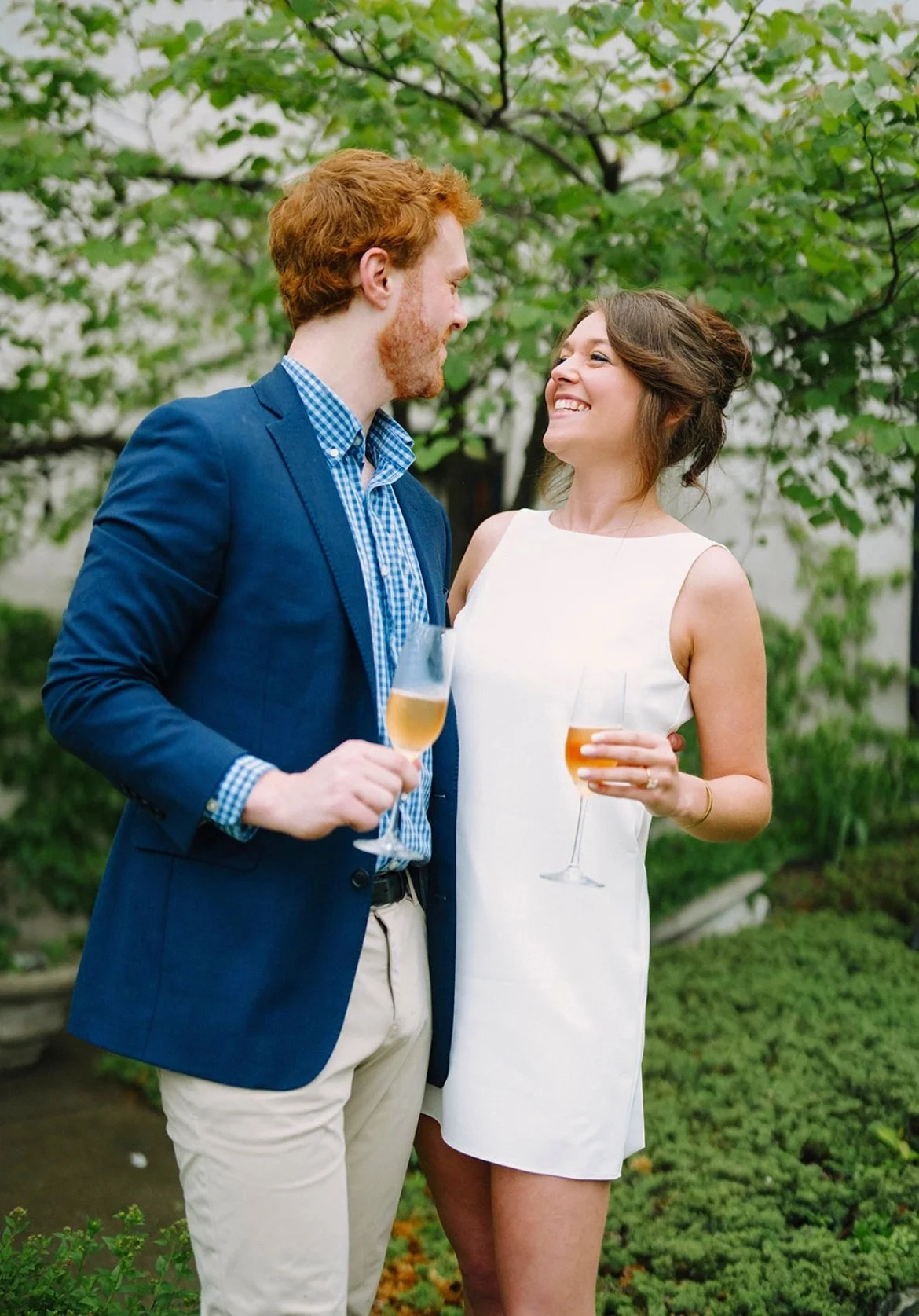 We’re tying the knot at Pinstripes in Edina, MN, just 15 minutes from both MSP airport and downtown Minneapolis — super convenient for out-of-town guests! Located in the beautiful Centennial Lakes office park, our venue is right where Libby works (fun fact: her office is just steps away!).